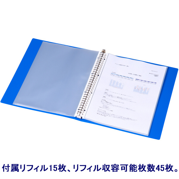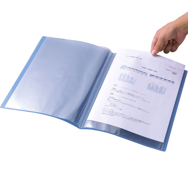 リヒトラブ アスクル 共同企画 クリヤーブック 差し替え式 30穴 A4タテ 15ポケット 背幅25mm ブルー オリジナル