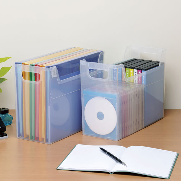 半透明のシンプルな樹脂製ボックスで、どんなオフィスにも自然になじみます。丈夫なつくりで、書類や資料をまとめて保管できるうえ、必要な資料も簡単に見つけられるのも魅力です。