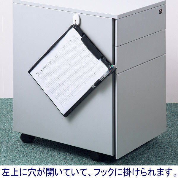 樹脂製のため汚れや水に強く、表面にはエンボス加工が施されているのでボールペンでも書きやすく、社内で共有する書類や管理表などを挟むのにおすすめです。