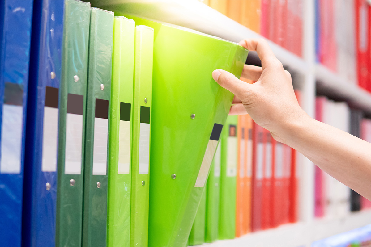 ファイルとは、紙の書類を整理、保存、保護するために使用される文房具です。まずはオフィスでよく使われるファイルの種類を紹介します。