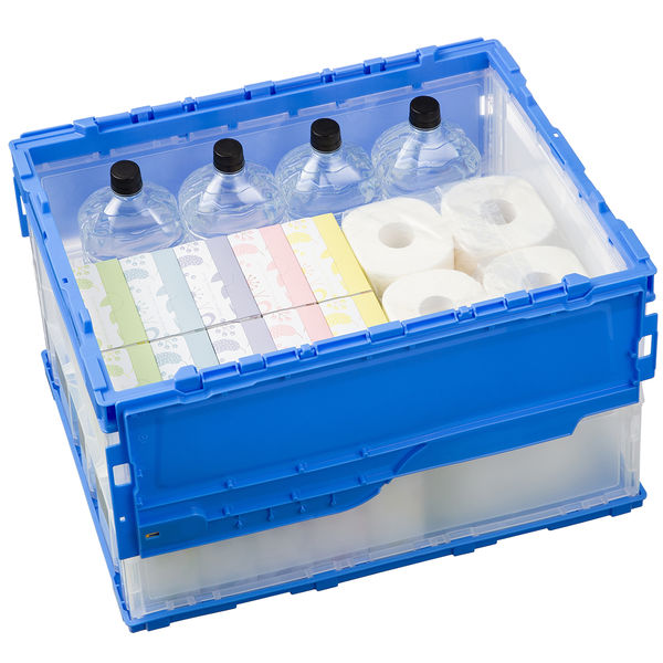 豊富なバリエーションが魅力のアスクルオリジナル折りたたみコンテナです。オールプラスチック製で物流現場のニーズに応えた丈夫な設計は、最大14段まで積み重ね可能です。フタも付いているので、荷物を安全に保管できます。クリアタイプ以外のブルーカラーや、容量40L・50Lのタイプなどもあり、倉庫やオフィスの広さ、収納物にあわせて使い分けやすくなっています。