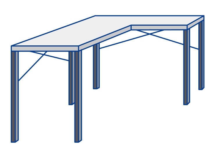 L字タイプの大きな特徴は、天板がL字型になっていることです。この特有の形状によって、パソコンで作業する際に広いスペースを確保できるため、多くの人に選ばれています。広いスペースは作業だけでなく、デスクトップパソコンのモニターやプリンターの置き場所としても使用できます。