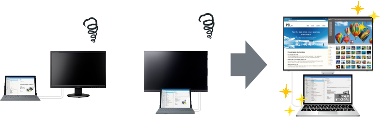 そんな時、液晶モニターと接続すれば、作業領域が広がります。2画面を見比べながら作業を行えるため、大幅に作業効率アップ!