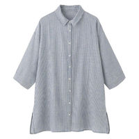 ディーエーピーネットワーク 7分袖ストライプブラウス ブルー M~L W0182180221 1着(直送品)