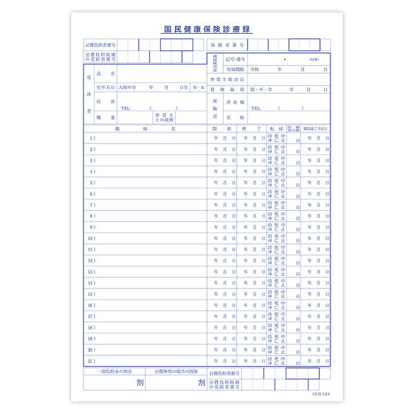 | 備考 | B5/診療録/国民健康保険/1号紙 | 種類 | 国保用 |