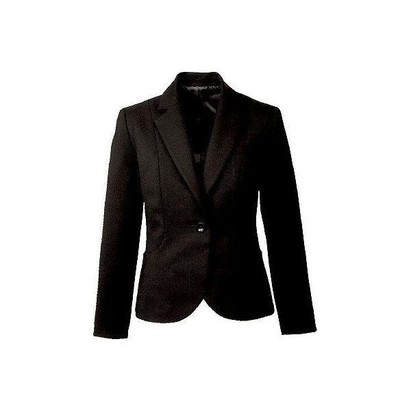 ラインのきれいな上質素材の黒ジャケット。接客にも営業にも使える。