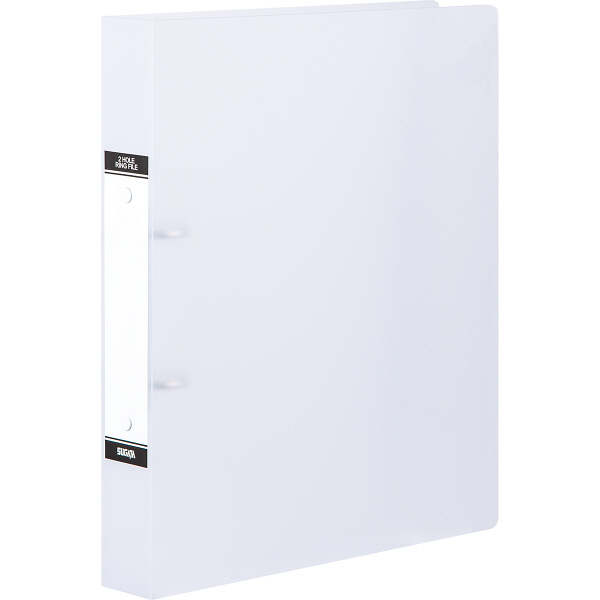 A4サイズのコピー用紙を約250枚収容できるハピラ(スガタ)の丸型2穴リングファイル。表紙はきれいな半透明カラーの樹脂製(PP製)。背幅4.0センチ。