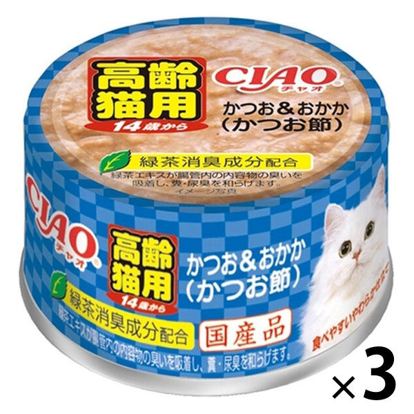 いなば CIAO チャオ 14歳からのかつお&おかか(かつお節)国産 75g 1セット(1缶×3)キャットフード 缶詰