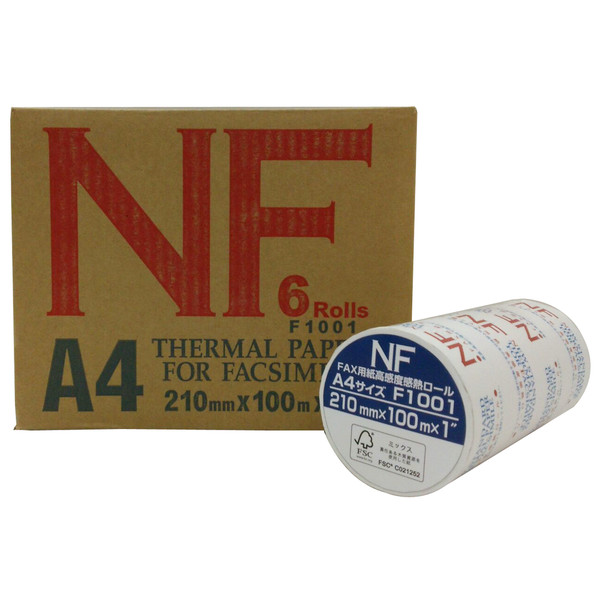 【アウトレット】三菱製紙 FSC FAX用紙高感度感熱ロール A4 幅210mm×長さ100m×芯径1インチ 1箱(6本入)