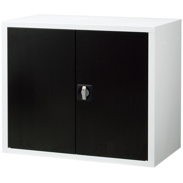 Ceha 深型スチール収納庫 両開き 2段 上置き用 ブラック×ホワイト 幅880mm 奥行500mm 高さ730mm 1台 (取寄品)