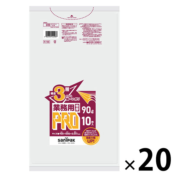 日本サニパック 業務用 プロシリーズ3層 90L 0.047mm 特厚 PA98 1箱(200枚入)