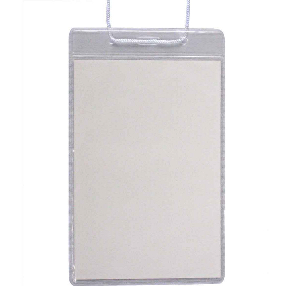 大量使いに便利なPVC素材のイベント用吊り下げ名札。名札本体はソフトタイプ。ハガキサイズが入る大きさで招待状などをそのまま入れることができます。