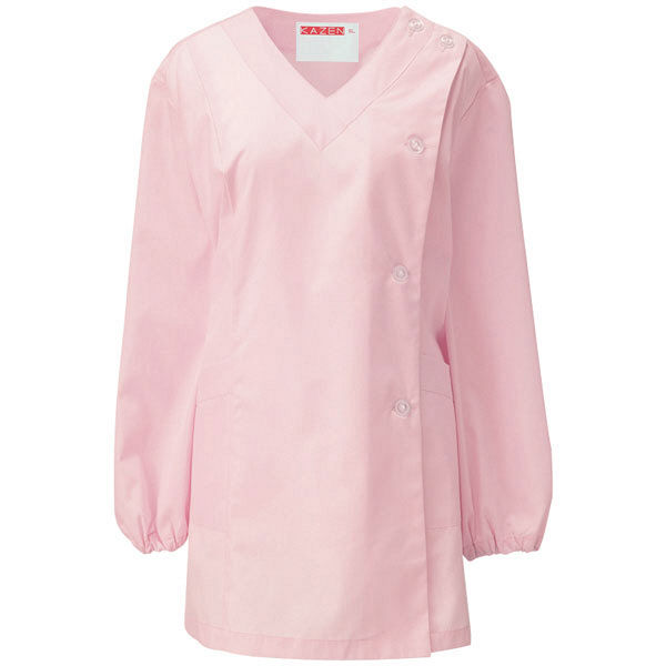 KAZEN(カゼン) レディスV衿調理衣長袖 ピンク 4L 525-33 1枚(直送品)