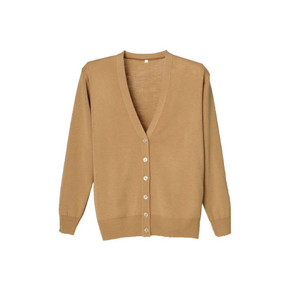 日本製のカーディガン!毛玉のできにくい坑ピル加工の柔らかな肌触り。優しい色のキャメルです。 ●伸縮性