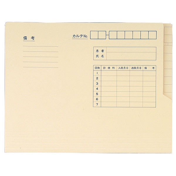 | 商品の特徴 | 退院患者カルテの保管用フォルダーです。フラップにより、カルテの抜け落ちを防ぎます。 | ||