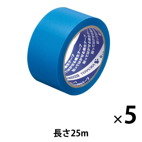「現場のチカラ」 貼ってはがせる養生テープ 青 幅50mm×長さ25m 寺岡製作所 1セット(5巻:1巻×5) オリジナル