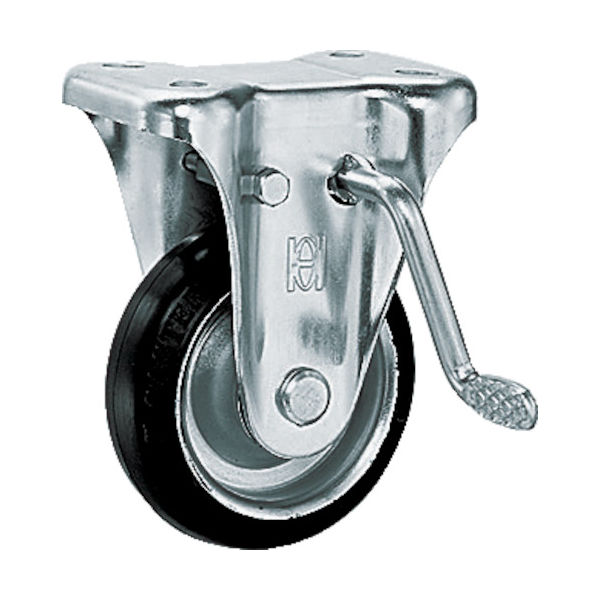 オーエッチ工業 OH プレスキャスターKBタイプ中荷重用 固定(ベアリング入り)ブレーキ付 ゴム車 車輪径150mm OHKB-150 1個(直送品)