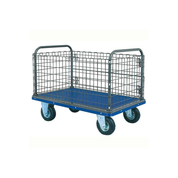 | 商品の特徴 | ●荷台寸法/1225×775mm●押手高さ/940mm●最大積載質量/300kg●車輪径/直径220mm●金網高さ/500mm●カラー/荷台:青、車輪:黒 | ||