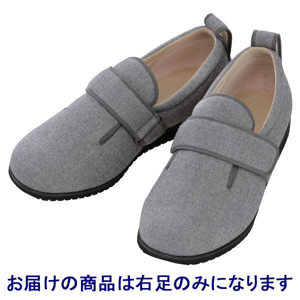 あゆみ 介護靴 1037ダブルマジックII ヘリンボン グレー5L(27.0-27.5cm)右足 施設・院内用(直送品)
