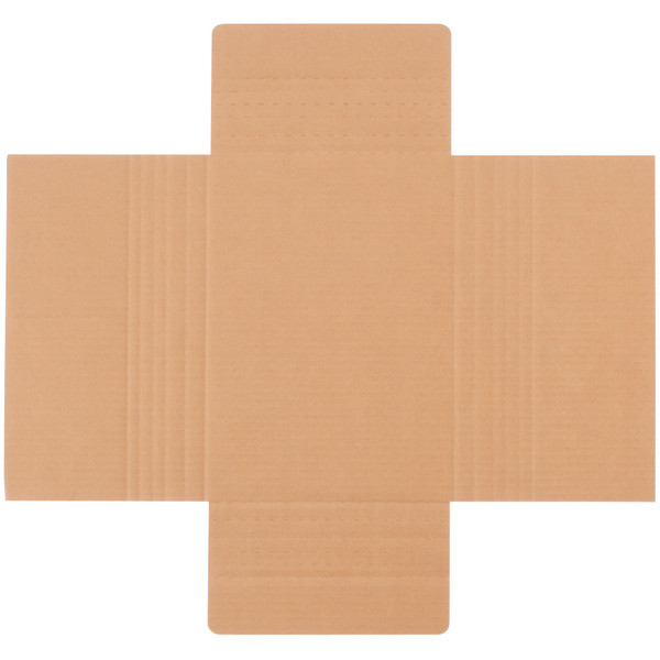 四辺を折り包んで梱包するタトウ式ダンボール。少量の荷物などの発送に便利。最薄に梱包すれば、メール便サイズにも対応。内容物に合わせて高さが5段階に調節できる折り目付き。