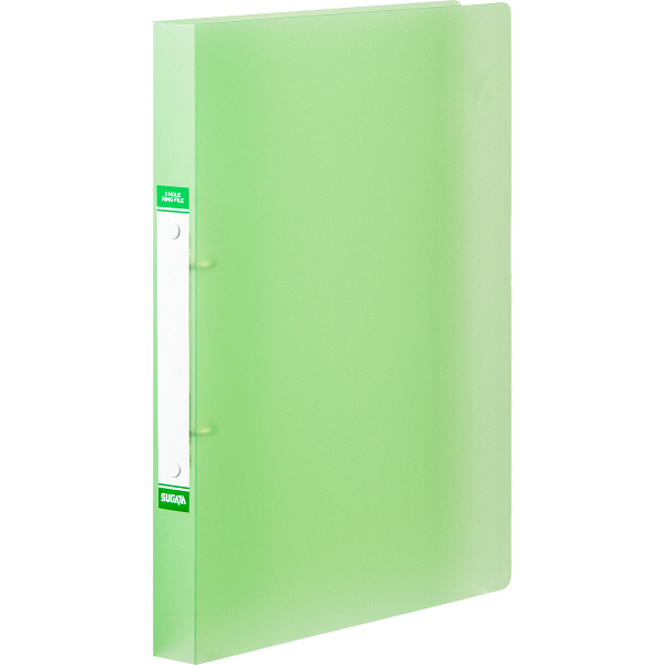 A4サイズのコピー用紙を約120枚収容できるハピラ(スガタ)の丸型2穴リングファイル。表紙はきれいな半透明カラーの樹脂製(PP製)。背幅2.5センチ。