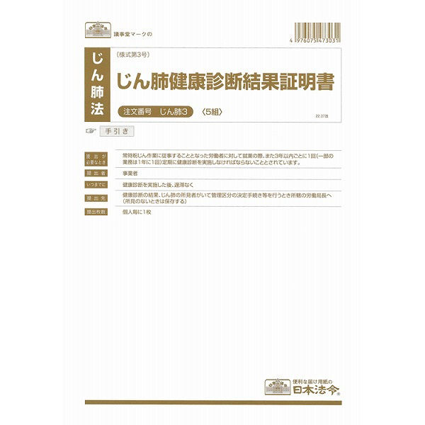 日本法令 じん肺健康診断結果証明書 じん肺 3