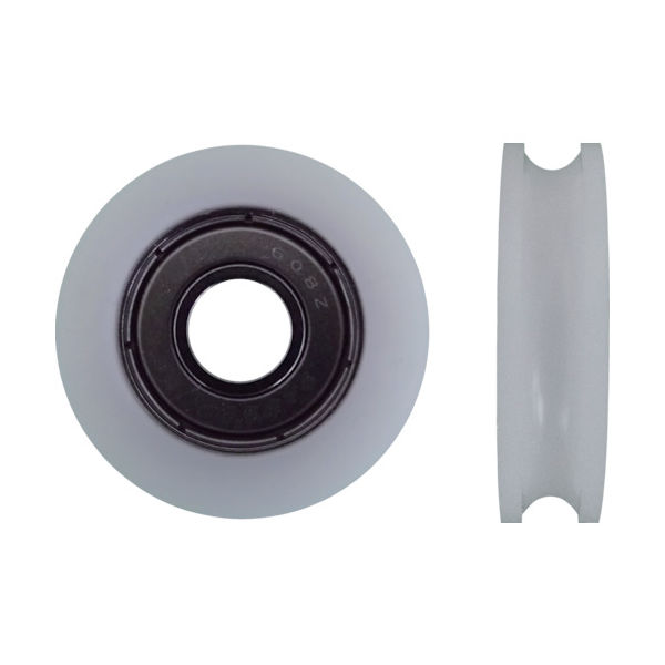 | 材質/仕上 | ベアリング:スチール・外周部:ポリアセタール樹脂(POM)・ボルト部:スチール | 用途 | ガイドローラー、ドアー(吊戸)、滑車、ワイヤ使用のテンション。 |