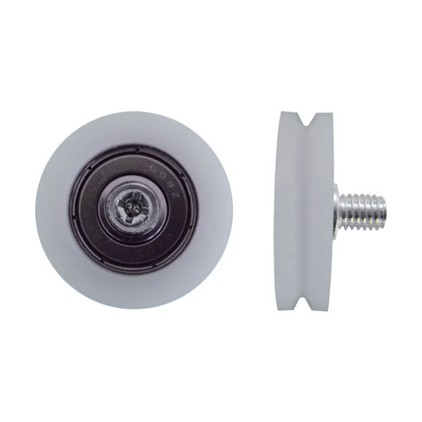 材質/仕上 ベアリング:スチール・外周部:ポリアセタール樹脂(POM)・ボルト部:スチール(表面処理:三価クロメートメッキ) 用途 ドアー(吊戸)、滑車、ワイヤ使用のテンション。