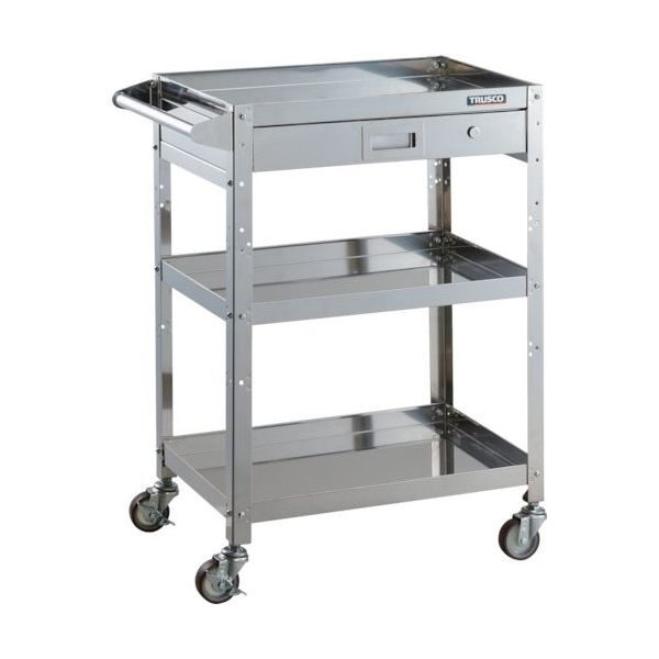 トラスコ中山 TRUSCO ステンレスワゴン クリーンラビット 75φゴム車SUS金具 1段引出ハンドル付 CRB-963HVSU 1台(直送品)