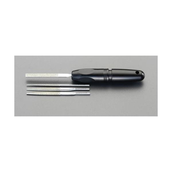 | 商品の特徴 | ●セット内容:●<セット内容>:4本組・平:5×1mm・丸:φ3mm・半丸:5×2mm・燕尾:5×2mm●全長:85mm●コーティング長:45mm●粒度:電着ダイヤモンド#200●やすりハンドル長:95mm●ハンドル直径:最大19.5mm●軸径:3mm●金型全般の研削作業に最適です | ||