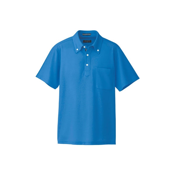 本商品:AITOZ(アイトス) 半袖ボタンダウンポロシャツ(男女兼用) 介護ユニフォーム ブルー L AZ-7617-006(直送品)