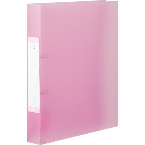 A4サイズのコピー用紙を約250枚収容できるハピラ(スガタ)の丸型2穴リングファイル。表紙はきれいな半透明カラーの樹脂製(PP製)。背幅4.0センチ。