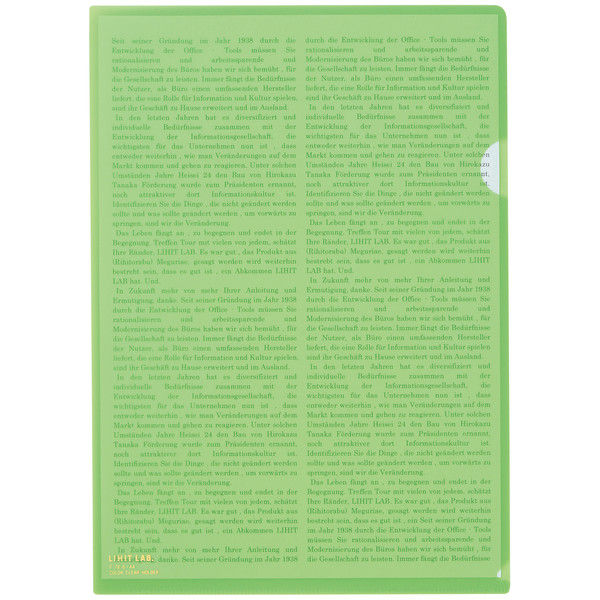| 商品の特徴 | リヒトラブのカラークリアホルダー。色分けで書類を整理することにより、インデックス等を使用しなくても簡単に分別と検索をスピーディーに行うことができます。サイズはA4で表紙は0.2mmとしっかりとした厚みです。再生樹脂(PP:ポリプロピレン)を50%使用しており、グリーン購入法にも適合しています。 | ||