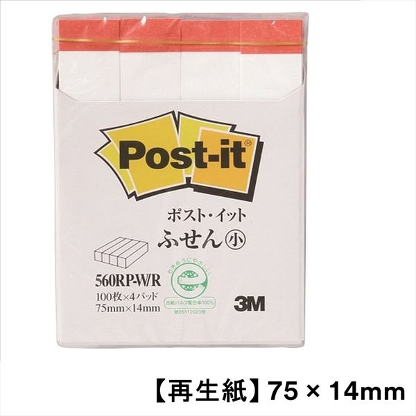 スリーエム(3M) ポストイット ふせん 付箋 再生紙 75mm×14mm ホワイト(赤線入り) 1パック(4冊入) 560RP-W/R