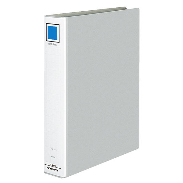コクヨの丈夫な貼り表紙製2穴リングファイル。A4サイズのコピー用紙が約330枚入ります。片手でつまんで簡単に開くとじ具を採用。