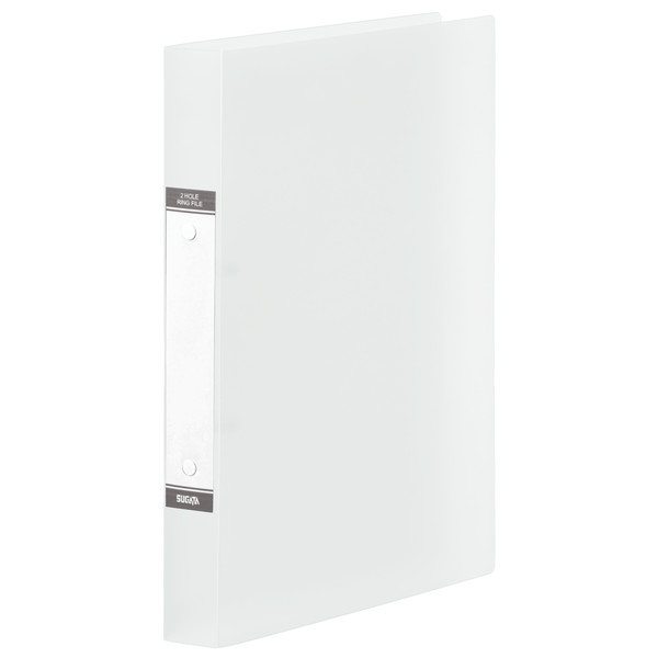 A4サイズのコピー用紙を約200枚収容できるハピラ(スガタ)の丸型2穴リングファイル。表紙はきれいな半透明カラーの樹脂製(PP製)。背幅3.5センチ。