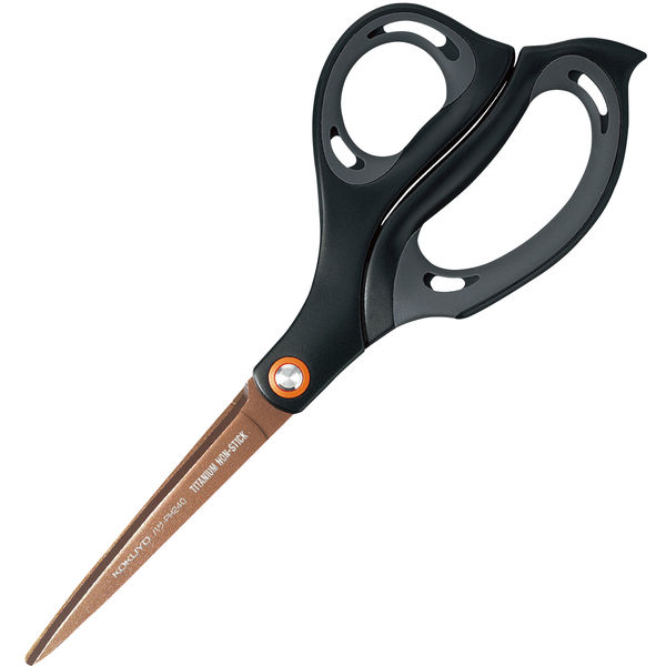 厚紙もザクッと切れるはさみ。エアロフィットの高品位タイプで、グルーレス構造とフッ素コーティングでのりが付きにくいハサミです。チタンコーティングではじめの切れ味が続く。
