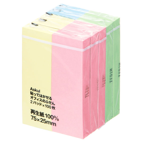 アスクル 貼ってはがせるオフィスのふせん 75×25mm パステルカラー 4色セット オリジナル