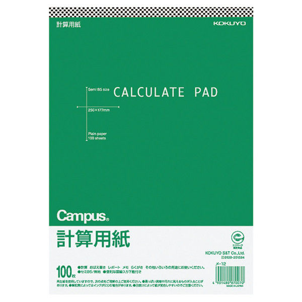 本商品:コクヨ 計算用紙 B5 メ-12 1セット(2000枚:100枚×20冊) |