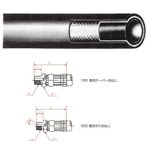 横浜ゴム 一般油圧ホース 2400mm 1001金具・1002金具 L35ー L35-25-2400 1001+1002 1本(2.4m)(直送品)