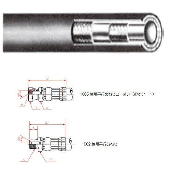 | その他3 | ●外面カバー構造/耐摩・耐候性合成ゴム | その他4 | ●金具1形状/管用平行めねじユニオン(おすシート) |