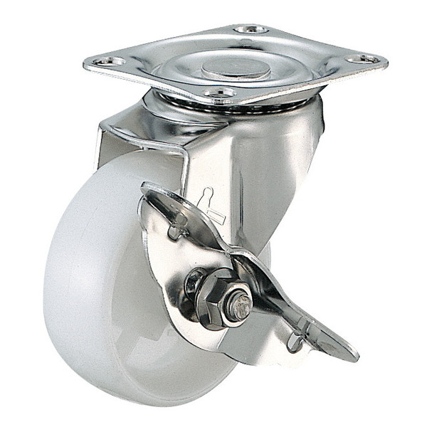 | 商品の特徴 | ●車輪の回転を止めるストッパー付き。耐蝕性・耐水性に優れたオールステンレスキャスターです。旋回部にはステンレスボールが上下二段に組込まれており、荷重に対する抵抗力が大きく、旋回もスムーズです。食品工場・店舗及び事業所等の錆や腐蝕をきらう環境で使用される台車や機器等に最適です。 ●画像は外観イメージを表しています。実物は色、形状が異なる場合もあります。 | ||
