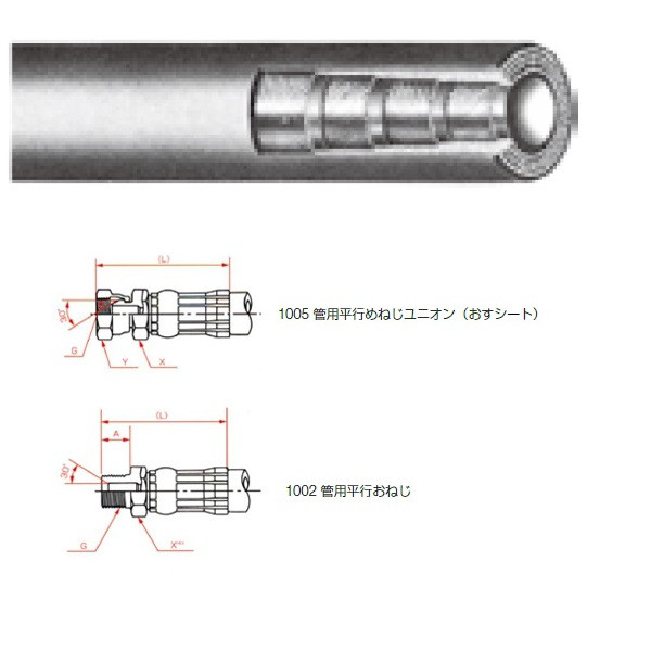 | その他3 | ●外面カバー構造/耐摩・耐候性合成ゴム | その他4 | ●金具1形状/管用平行めねじユニオン(おすシート) |