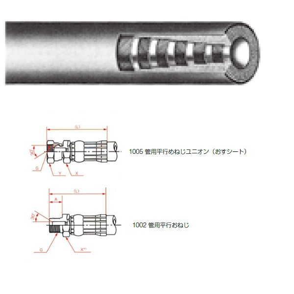 | その他3 | ●外面カバー構造/耐摩・耐候性合成ゴム | その他4 | ●金具1形状/管用平行めねじユニオン(おすシート) |