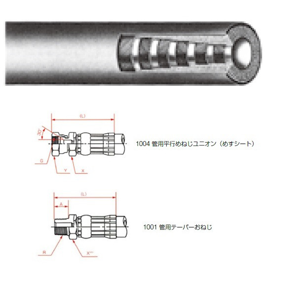 | その他3 | ●外面カバー構造/耐摩・耐候性合成ゴム | その他4 | ●金具1形状/管用平行めねじユニオン(めすシート) |