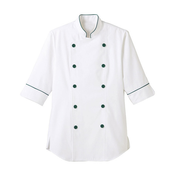 男女兼用ショップコート七分袖 S ホワイト×グリーン ET1137-0001 1着 サーヴォ(旧サンペックスイスト)(直送品)