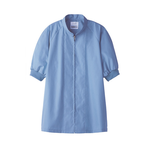 ニーズに合わせてバリエーションも豊富な男女兼用衛生白衣半袖。六分丈体毛落下防止メッシュ袖付き。
