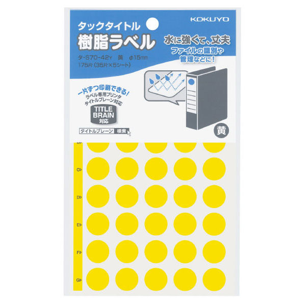 コクヨ タックタイトル樹脂ラベル 丸ラベル 直径15mm タ-S70-42Y 1セット(1750片:175片入×10パック)