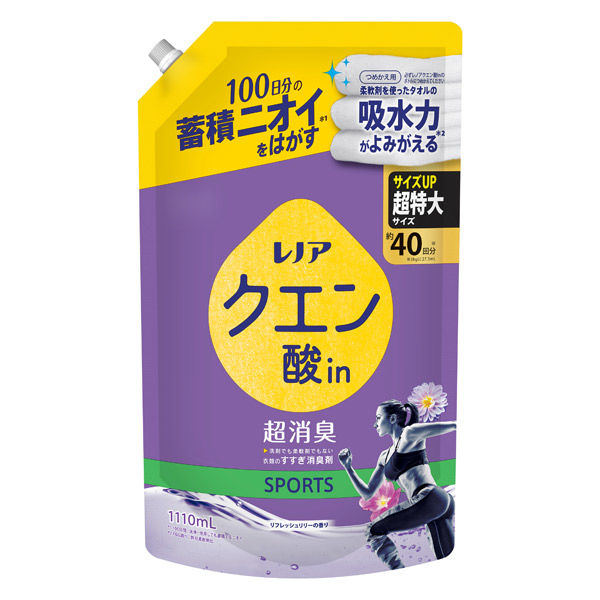 レノア クエン酸in(クエン酸イン) 超消臭 SPORTS リフレッシュリリー 詰め替え 超特大 1110mL 1個 すすぎ消臭剤 P&G