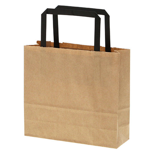 | 商品の特徴 | 手紐を黒色にした、クラフト紙の手提げ袋です。ナチュラル感はそのままでインパクトがあります。さまざまな用途にご利用いただけます。25チャームバッグの中でも、容積が最小の規格です。紐は外に出た状態で包装してあります。●手紐:平紐(黒)●入数:50枚 | ||